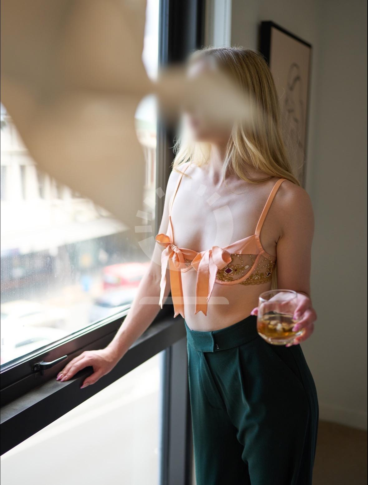 When you open the door, you will see a slender, feminine frame, adorned with soft curves and a subtle impish smile. My classically beautiful features and waist-length blonde hair radiates a vintage, yet effortlessly graceful aura. I have a flirtatious and witty sense of humour, and my background in ballet means I know my body well, making me both a graceful and playful woman.